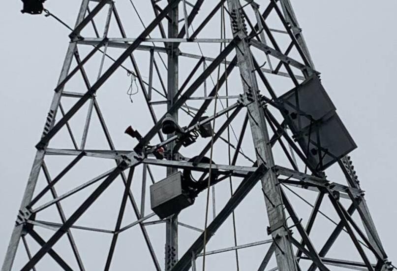 “再拉高一點(diǎn),好好好,現(xiàn)在保持不動(dòng)”,這是我司(深圳市特力康科技有限公司)工程師楊工在廣西安裝輸電線路隱患立體防護(hù)設(shè)備時(shí),塔上隊(duì)友通過對(duì)講機(jī)通過塔下吊升主機(jī)的相關(guān)人員拉升主機(jī)高度,以便主機(jī)與角鐵達(dá)到適當(dāng)位置,方便進(jìn)行支架的固定。