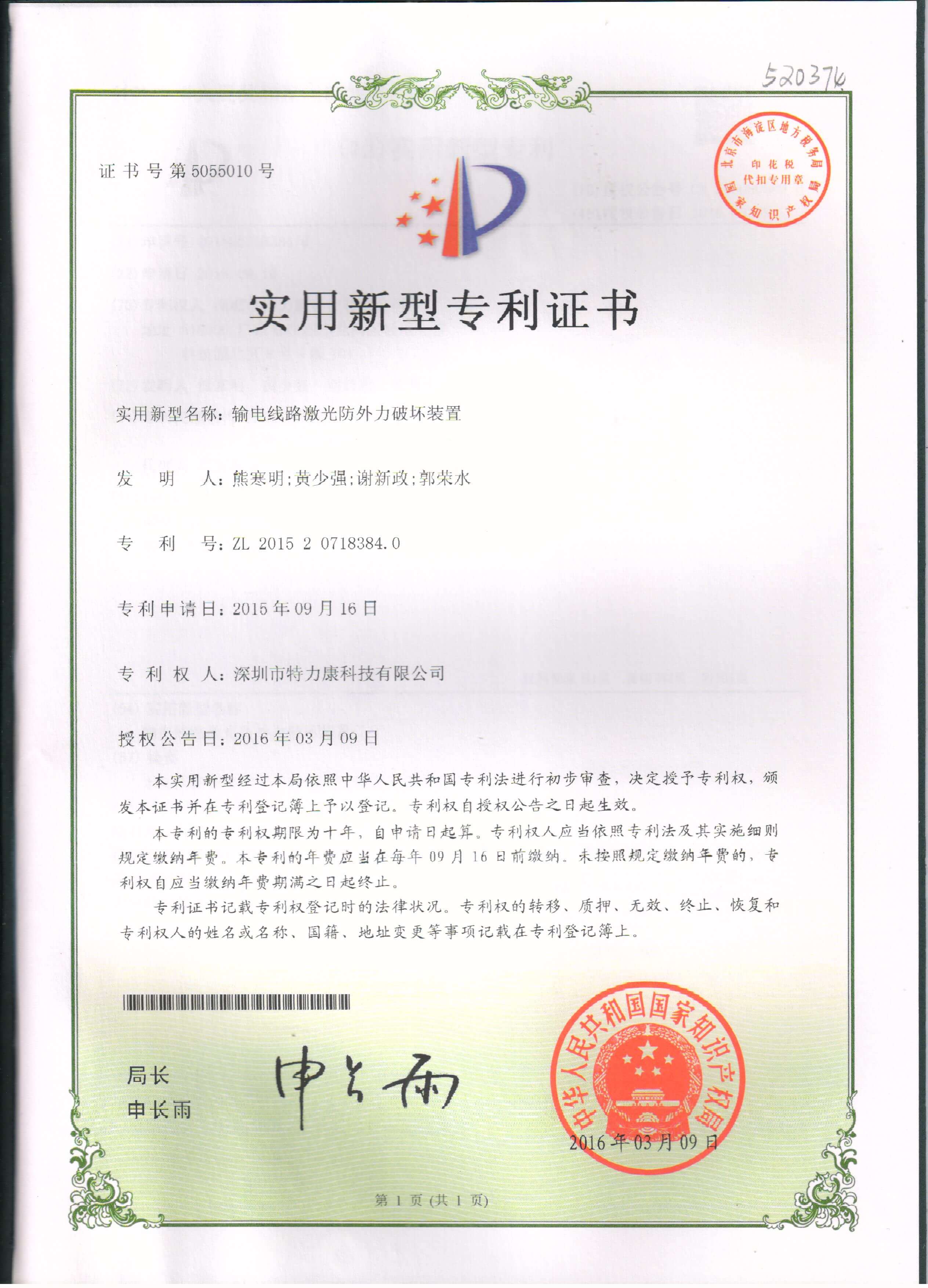 特力康中標國網黑龍江送變電工程公司的2024年度第18次物資類競爭性談判采購項目——慶陽驅鳥器物資框 特力康中標國網甘肅省電力公司省管產業(yè)單位2024年第五次物資競爭性談判授權采購項目 中標喜訊:深圳市特力康科技有限公司成功入圍許繼集團綜合能源公司輸電線路視頻在線監(jiān)測裝置模塊集采項目 中標喜訊:特力康成功中標國網重慶市電力公司渝中一片區(qū)項目 特力康成功中標國網天津市電力公司2024年第二次?物?資招標項目 特力康中標國網安徽省電力有限公司蕪湖供電公司2024年3月非物質采購項目 百套落地山西電網!特力康輕量化輸電架空線路監(jiān)拍裝置,筑牢輸電安全網 破解采空區(qū)隱患:山西電力裝特力康通用型監(jiān)測裝置,守鐵塔穩(wěn)運行 四川電力用特力康架空輸電線路山火監(jiān)測裝置,筑牢林區(qū)輸電 “防火墻”? 遼寧電力啟用特力康多視角監(jiān)拍裝置,全維度守護輸電安全? 破解黃土高原沉降難題:山西電力用特力康北斗裝置守桿塔安全? 山東電力啟用特力康動態(tài)版智能激光驅鳥器,動態(tài)防控守護變電站安全? 湖南超高壓電力啟用特力康球機 AI 監(jiān)測裝置,智能守護輸電通道安全? 廣西電力啟用特力康高壓電纜護層環(huán)流監(jiān)控設備,筑牢電纜安全防線? 寧夏配電線路安裝了我司防外破電子化智能警示牌