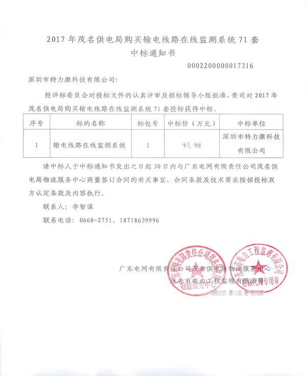 特力康中標(biāo)國(guó)網(wǎng)黑龍江送變電工程公司的2024年度第18次物資類(lèi)競(jìng)爭(zhēng)性談判采購(gòu)項(xiàng)目——慶陽(yáng)驅(qū)鳥(niǎo)器物資框 特力康中標(biāo)國(guó)網(wǎng)甘肅省電力公司省管產(chǎn)業(yè)單位2024年第五次物資競(jìng)爭(zhēng)性談判授權(quán)采購(gòu)項(xiàng)目 中標(biāo)喜訊:深圳市特力康科技有限公司成功入圍許繼集團(tuán)綜合能源公司輸電線(xiàn)路視頻在線(xiàn)監(jiān)測(cè)裝置模塊集采項(xiàng)目 中標(biāo)喜訊:特力康成功中標(biāo)國(guó)網(wǎng)重慶市電力公司渝中一片區(qū)項(xiàng)目 特力康成功中標(biāo)國(guó)網(wǎng)天津市電力公司2024年第二次?物?資招標(biāo)項(xiàng)目 特力康中標(biāo)國(guó)網(wǎng)安徽省電力有限公司蕪湖供電公司2024年3月非物質(zhì)采購(gòu)項(xiàng)目 百套落地山西電網(wǎng)!特力康輕量化輸電架空線(xiàn)路監(jiān)拍裝置,筑牢輸電安全網(wǎng) 破解采空區(qū)隱患:山西電力裝特力康通用型監(jiān)測(cè)裝置,守鐵塔穩(wěn)運(yùn)行 四川電力用特力康架空輸電線(xiàn)路山火監(jiān)測(cè)裝置,筑牢林區(qū)輸電 “防火墻”? 遼寧電力啟用特力康多視角監(jiān)拍裝置,全維度守護(hù)輸電安全? 破解黃土高原沉降難題:山西電力用特力康北斗裝置守桿塔安全? 山東電力啟用特力康動(dòng)態(tài)版智能激光驅(qū)鳥(niǎo)器,動(dòng)態(tài)防控守護(hù)變電站安全? 湖南超高壓電力啟用特力康球機(jī) AI 監(jiān)測(cè)裝置,智能守護(hù)輸電通道安全? 廣西電力啟用特力康高壓電纜護(hù)層環(huán)流監(jiān)控設(shè)備,筑牢電纜安全防線(xiàn)? 寧夏配電線(xiàn)路安裝了我司防外破電子化智能警示牌