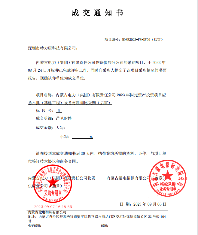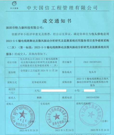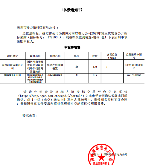 特力康中標(biāo)國(guó)網(wǎng)黑龍江送變電工程公司的2024年度第18次物資類(lèi)競(jìng)爭(zhēng)性談判采購(gòu)項(xiàng)目——慶陽(yáng)驅(qū)鳥(niǎo)器物資框 特力康中標(biāo)國(guó)網(wǎng)甘肅省電力公司省管產(chǎn)業(yè)單位2024年第五次物資競(jìng)爭(zhēng)性談判授權(quán)采購(gòu)項(xiàng)目 中標(biāo)喜訊:深圳市特力康科技有限公司成功入圍許繼集團(tuán)綜合能源公司輸電線路視頻在線監(jiān)測(cè)裝置模塊集采項(xiàng)目 中標(biāo)喜訊:特力康成功中標(biāo)國(guó)網(wǎng)重慶市電力公司渝中一片區(qū)項(xiàng)目 特力康成功中標(biāo)國(guó)網(wǎng)天津市電力公司2024年第二次?物?資招標(biāo)項(xiàng)目 特力康中標(biāo)國(guó)網(wǎng)安徽省電力有限公司蕪湖供電公司2024年3月非物質(zhì)采購(gòu)項(xiàng)目 百套落地山西電網(wǎng)!特力康輕量化輸電架空線路監(jiān)拍裝置,筑牢輸電安全網(wǎng) 破解采空區(qū)隱患:山西電力裝特力康通用型監(jiān)測(cè)裝置,守鐵塔穩(wěn)運(yùn)行 四川電力用特力康架空輸電線路山火監(jiān)測(cè)裝置,筑牢林區(qū)輸電 “防火墻”? 遼寧電力啟用特力康多視角監(jiān)拍裝置,全維度守護(hù)輸電安全? 破解黃土高原沉降難題:山西電力用特力康北斗裝置守桿塔安全? 山東電力啟用特力康動(dòng)態(tài)版智能激光驅(qū)鳥(niǎo)器,動(dòng)態(tài)防控守護(hù)變電站安全? 湖南超高壓電力啟用特力康球機(jī) AI 監(jiān)測(cè)裝置,智能守護(hù)輸電通道安全? 廣西電力啟用特力康高壓電纜護(hù)層環(huán)流監(jiān)控設(shè)備,筑牢電纜安全防線? 寧夏配電線路安裝了我司防外破電子化智能警示牌