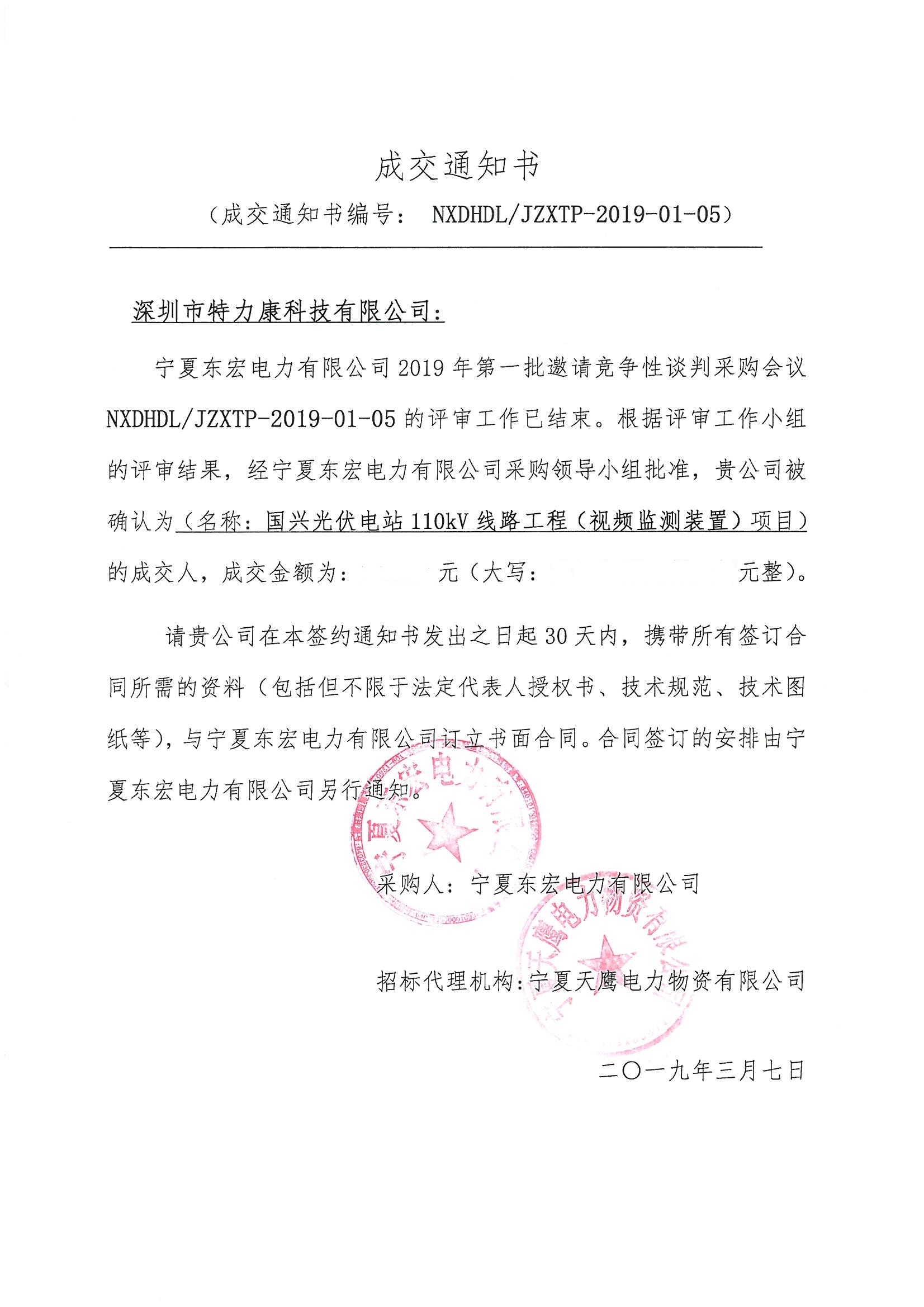 我司中標(biāo)寧夏2019年第一批邀請競爭性110kv(視頻監(jiān)控裝置)項(xiàng)目
